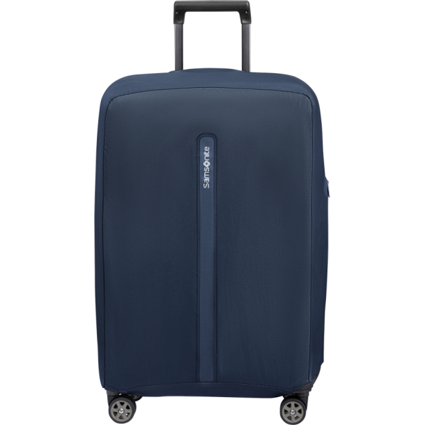 Made to protect your luggage, this cover's distinct design makes it also easy to identify. Stretch fabric on the sides enables the cover fit to the shape of your luggage. Quick access zipper openings for top and side carry-handles. Folds into integrated pouch for easy storage.